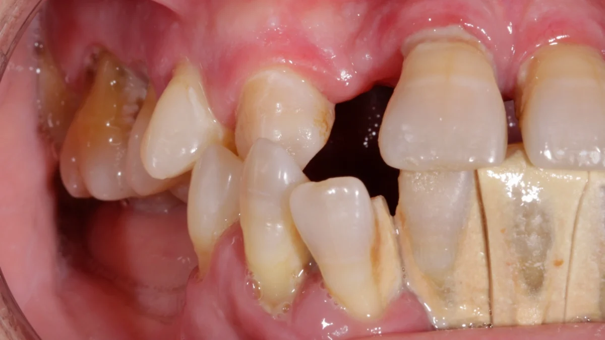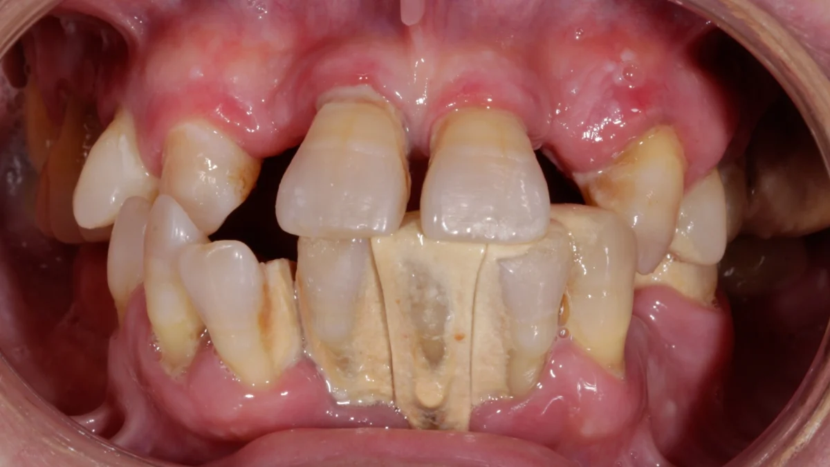 Paciente de 55 años, con grave problema oclusal, estético y periodontal. Sin antecedentes médicos de interés ni alergias, no fumadora (paciente ASA I).