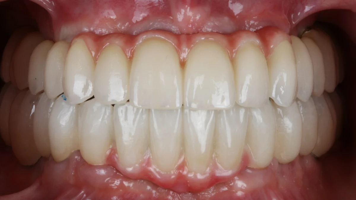 Tras realizar un estudio integral, planificamos un abordaje integral maxilar y mandibular basado en la colocación de implantes y regeneración ósea bajo sedación consciente y en quirófano. Colocamos carga inmediata superior e inferior, recuperando así la función y estética perdida en el mismo día. Finalmente, colocamos prótesis definitiva de zirconio con estructura de titanio, consiguiendo un resultado óptimo y cumpliendo así los objetivos de la paciente.
